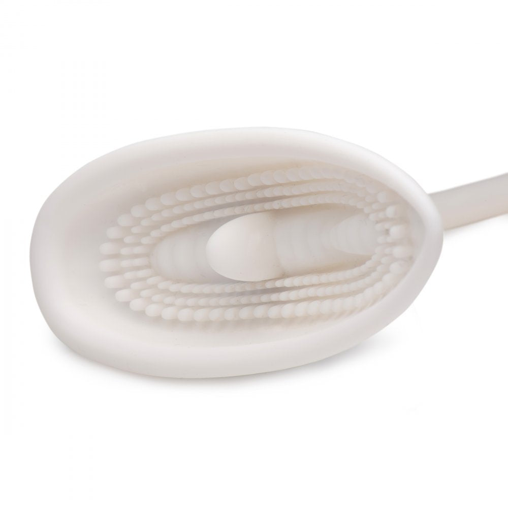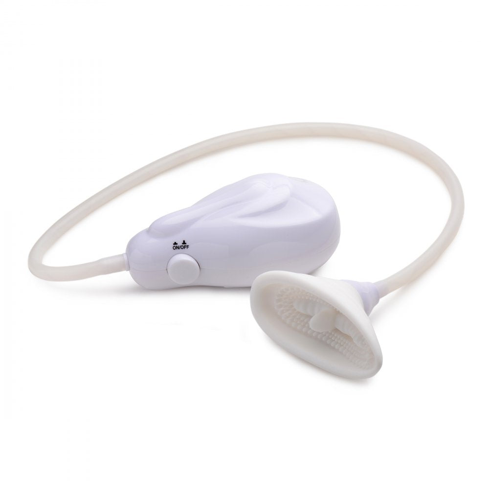 Suction your sensitive vulva into texture and vibration! Place the silicone cup against your labia and clitoris and use the automatic pump to turn on the vacuum and vibration. Soft tendrils will massage your most delicate parts while a small tongue laps up your sweetness. The pressure will also draw more blood to the area, making you more sensitive. The on-off button is easy to use, while a vacuum release button with quickly free you from the euphoria within the cup. The premium silicone material is non-porous and phthalate-free, but not compatible with silicone lubricants. Clean with mild soap and warm water.