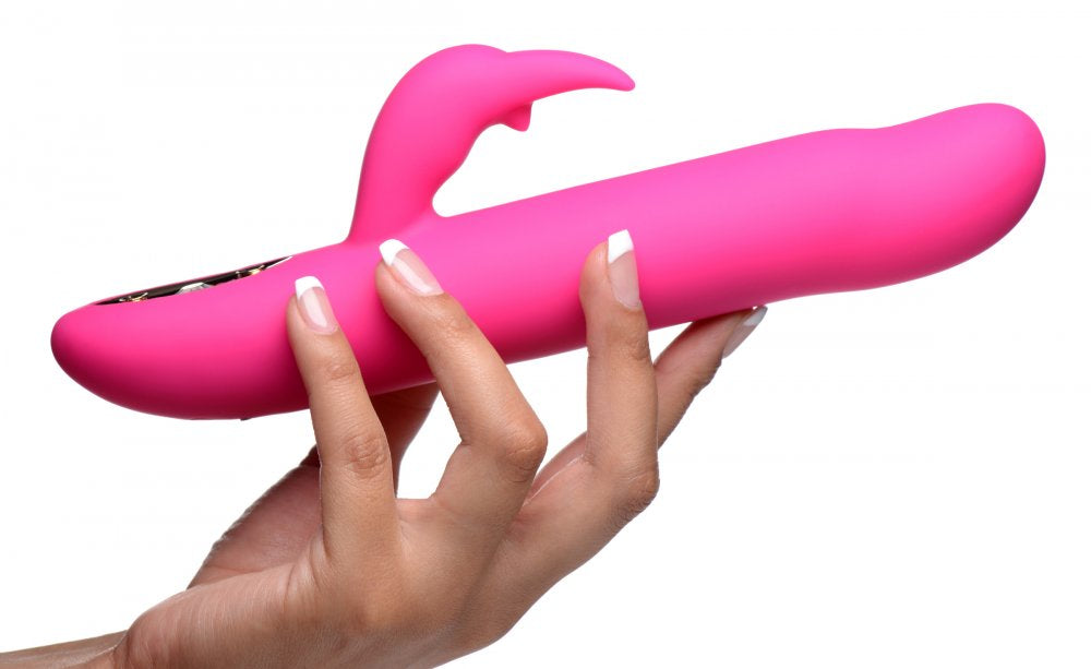 With its unique Come Hither motion, this first of its kind rabbit style vibe is packed with incredible stimulating features for the ultimate in sensual pleasure. The unique G-spot tip flexes and pulses to create an incredible sensation inside you, bending forward and back again like a beckoning finger. You control the speed of the movement with the integrated button on the front. Another button lets you independently control the rhythmic vibration and pulsation speeds for a multitude of sexy sensations. Topping off this decadent pleasure toy is the enticing clitoral stimulator, placed to perfectly reach your hot spot. Made of premium silicone so it is hypoallergenic and body safe. Comes with a USB cable, for wireless and battery free pleasure on the go.