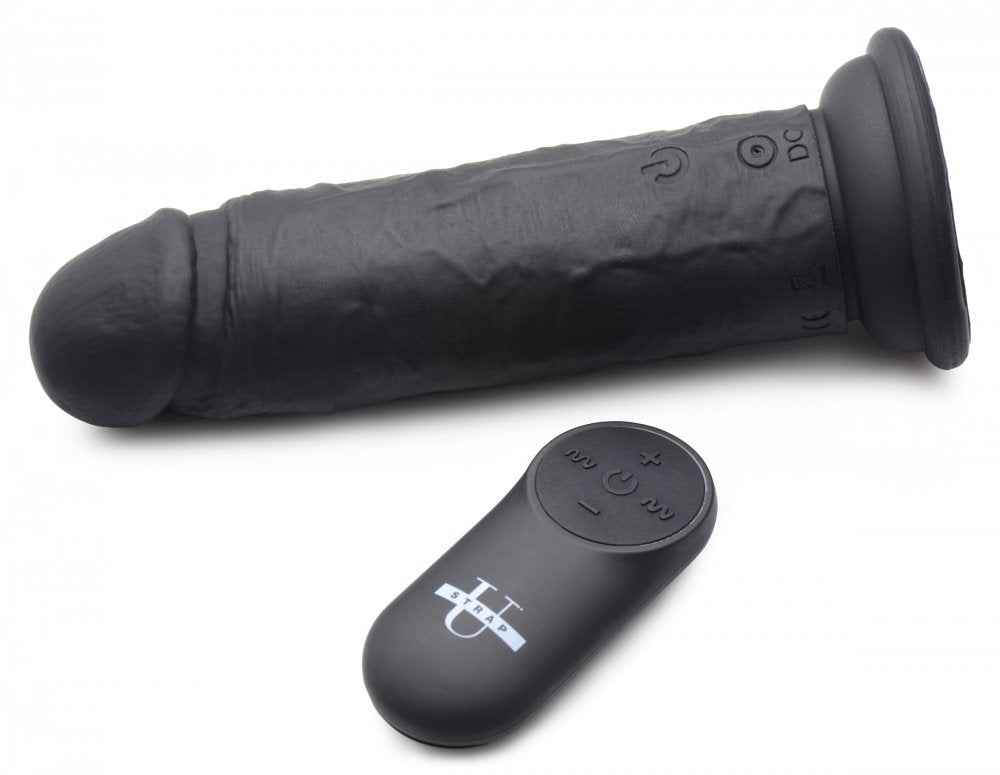 Indulge in this meaty, silky smooth and realistic cock! This dildo not only has a sexy, smooth head, veins along the shaft and realistic firmness, it also comes with powerful vibration! Choose between 4 speeds and 7 patterns of vibration that you can control with the remote control included! Play with yourself by placing the suction cup base on a flat surface and riding it to satisfaction, or pair it with a harness to have fun with a partner and explore pegging and strapon play!